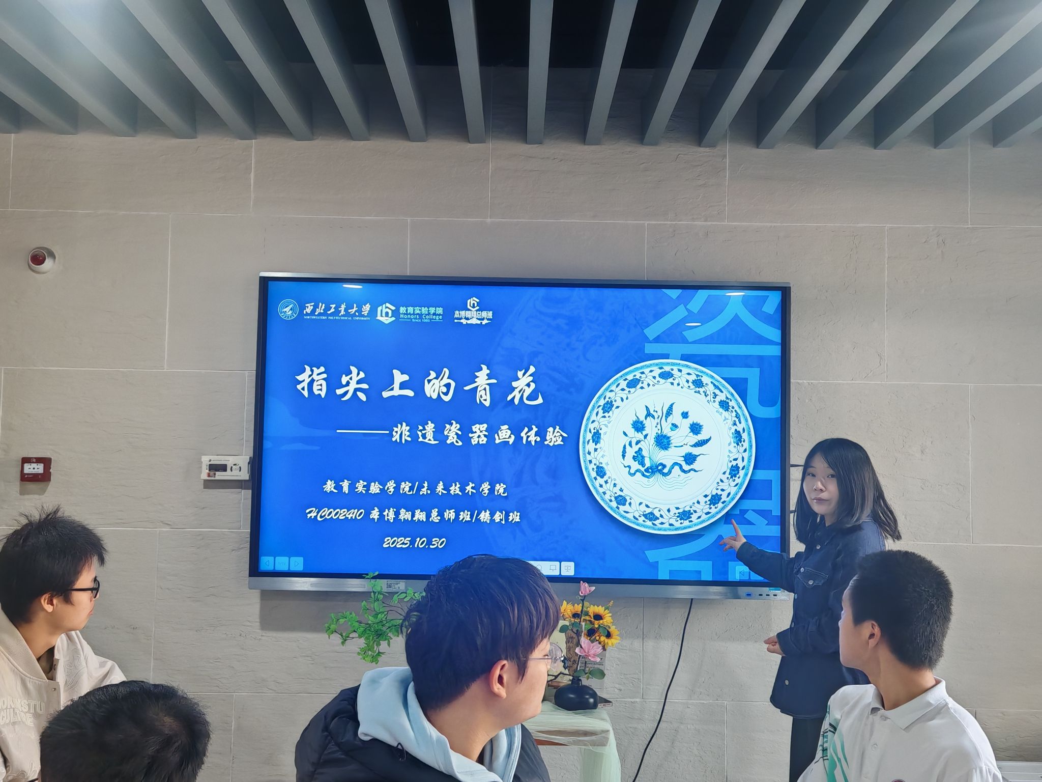 为深化铸牢中华民族共同体意识教育,推动中华优秀传统文化在学生中发扬和传承,增强“总师型”人才的文化素养与文化自信,10月30日,教育实验学院/未来技术学院在启真学生社区举办“指尖上的青花——非遗瓷器画体验”活动。学院铸剑班指导教师王杰,20余名铸剑班学生参加活动。