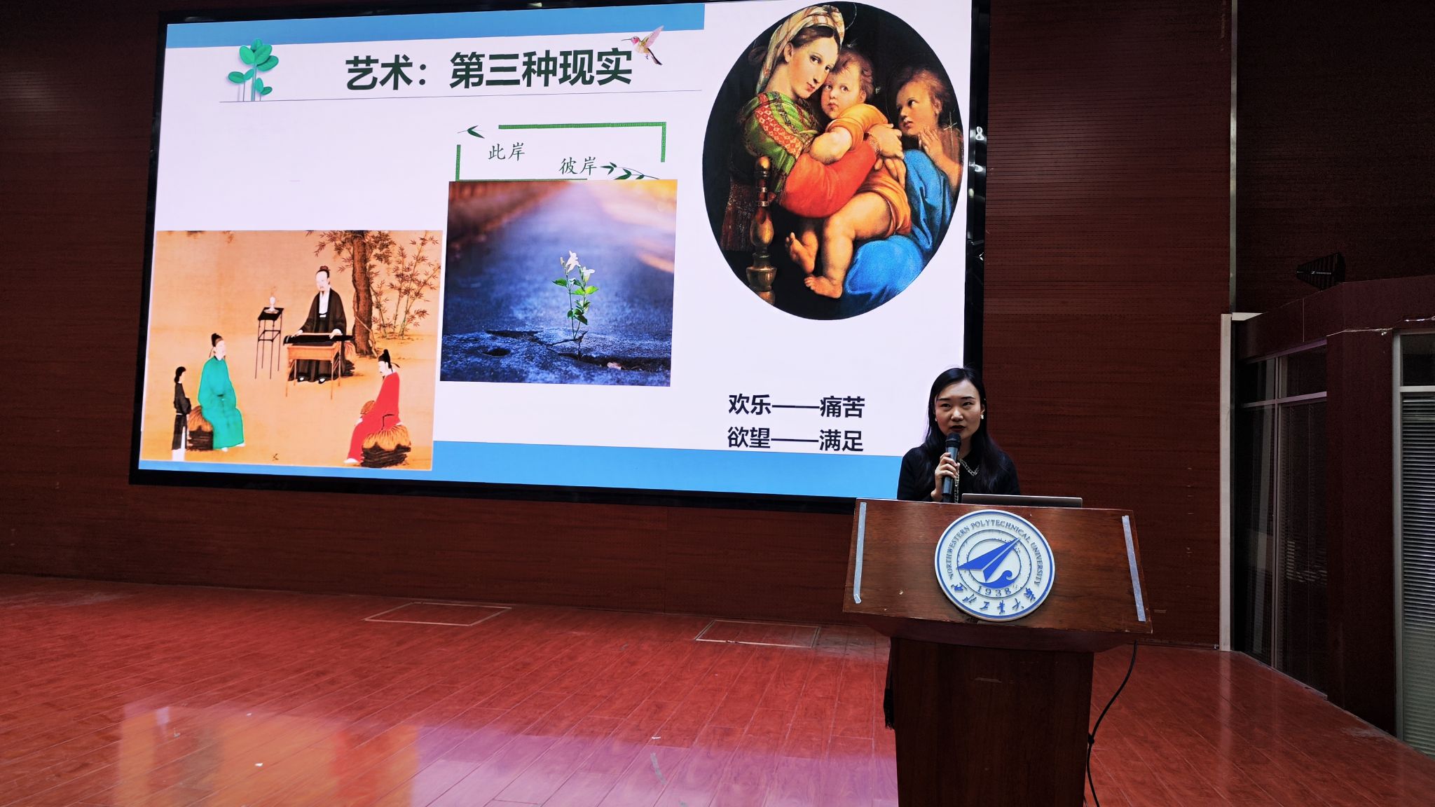 师友圆桌环节前,余书涵老师在教西D100开展题为“《红楼梦》里的虚与实”的中国古典文学品鉴讲座。她通过剖析人物塑造、情节架构、语言艺术及隐喻手法,引导同学从经典中感悟现实启示。现场气氛热烈,同学认真聆听、踊跃互动。