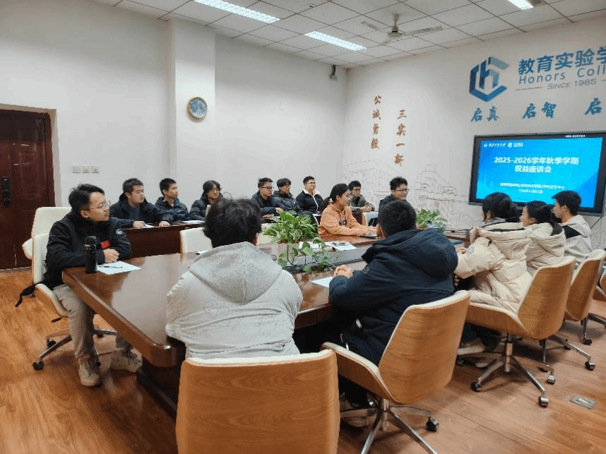 2025年12月30日,教育实验学院/未来技术学院/学科交叉中心在学院启智室召开2025-2026学年秋季学期权益座谈会。本次会议由院学生会执行主席何嘉强主持,校学生会工作人员、院学生会负责人及学院各年级各班学生代表齐聚一堂,共话权益保障,搭建沟通桥梁。