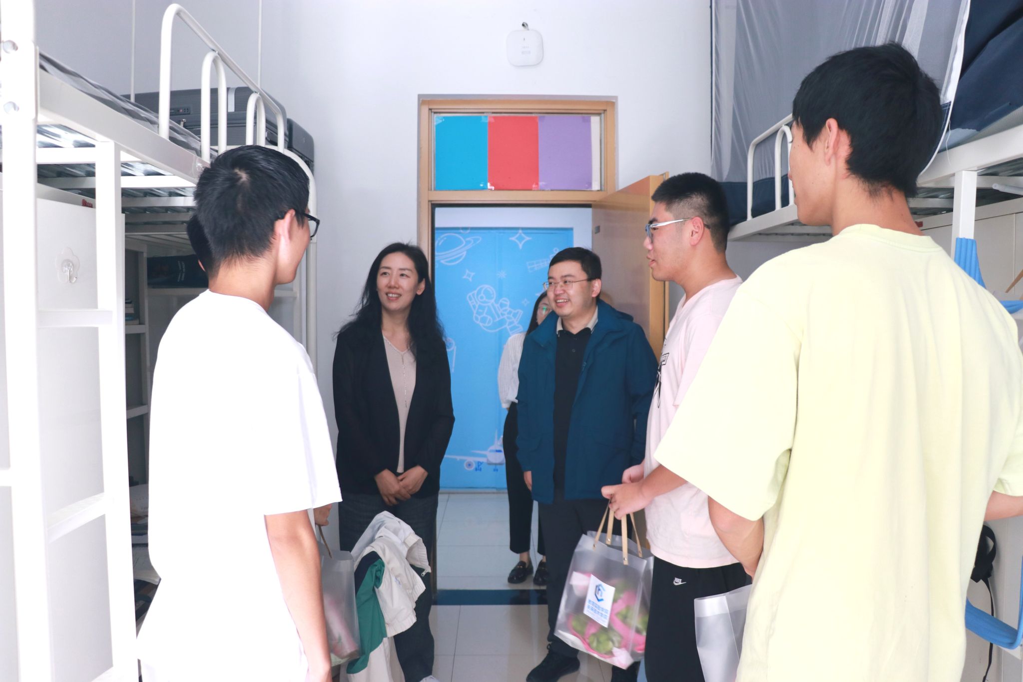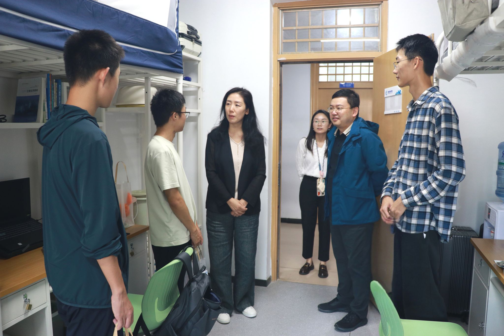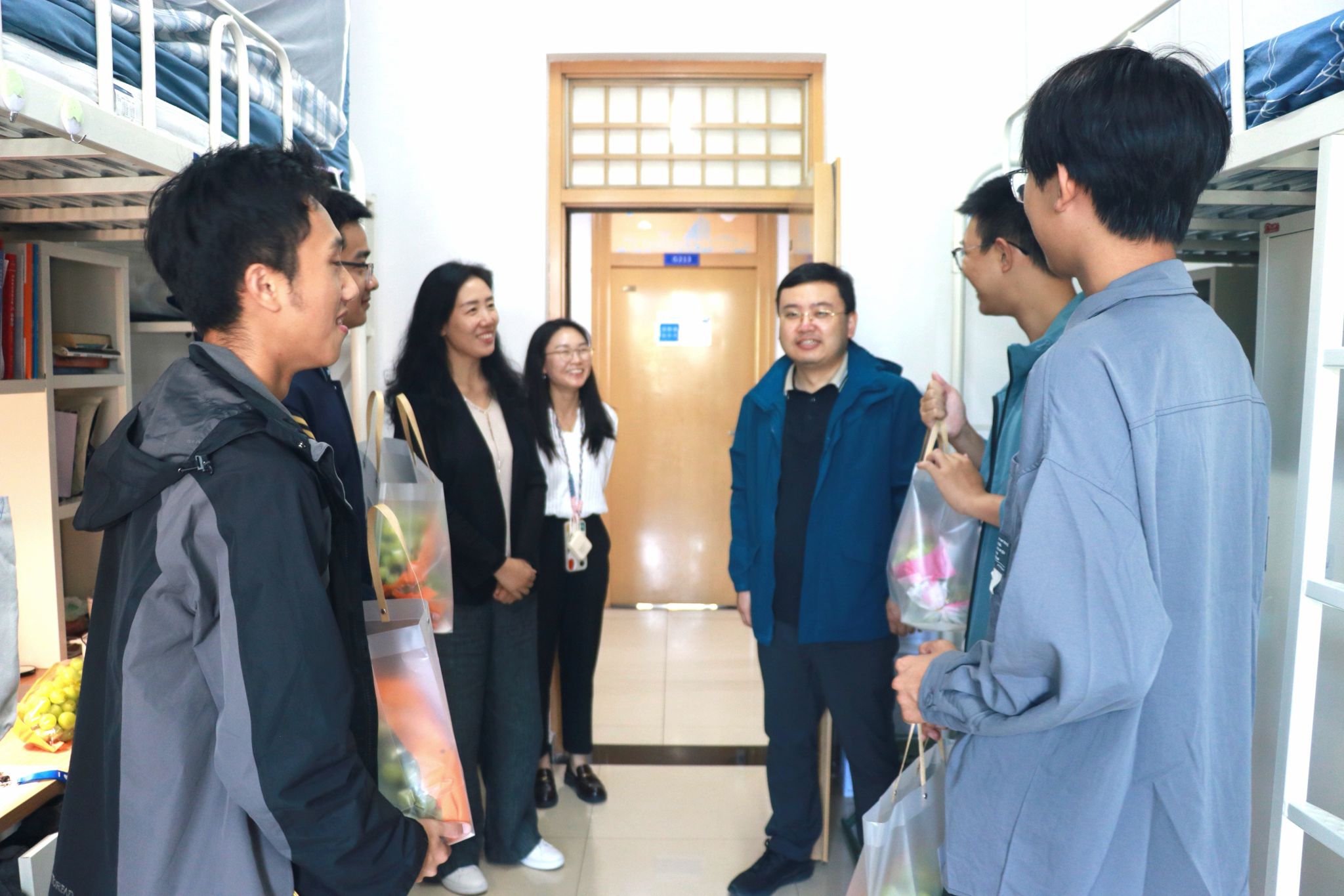 2025年国庆节、中秋节长假将至,为确保节日期间安全形势持续稳定,增强师生防范意识,9月30日中午,学院党总支书记牟蕾带队深入启真社区,开展学生公寓安全检查,并看望慰问宿舍学生,为同学们送上学院节日的关心。副书记、副院长范翔,各年级辅导员参加检查慰问。
